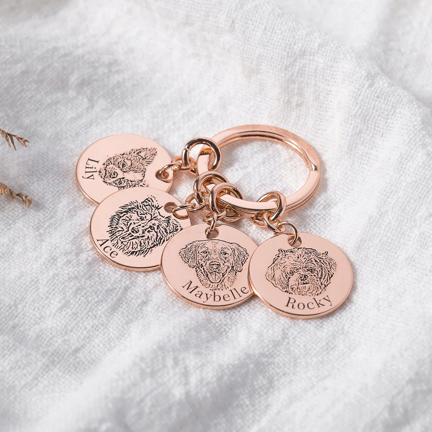 Ta med ditt husdjur överallt! Ladda upp ett foto på din lurviga vän så gör vi en glänsande nyckelring med deras ansikte och namn. Perfekt för dina nycklar eller din väska.